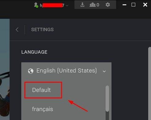 3、弹出语言选择的下拉菜单后,选择“default”选项即可将语言设置为中文,具体操作可参照图示。