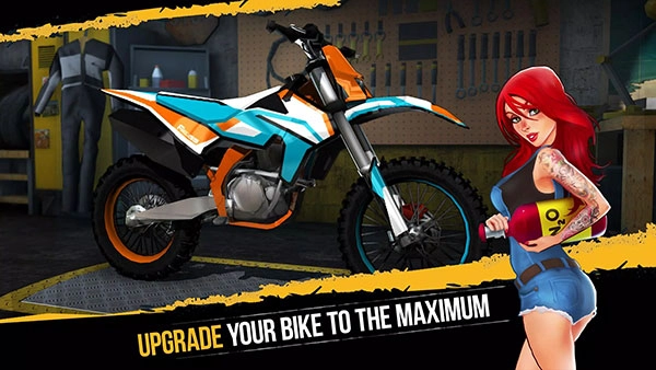 5、完成游戏关卡并获得胜利奖励后,你可以回到主界面,对摩托车的动力系统进行改装,提升其平衡性能与输出功率,这对玩家在比赛中取得优势至关重要。
