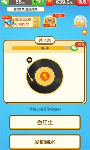 丰富奖励:玩家成功猜出歌曲后,既能享受游戏的乐趣,还能获取实实在在的奖励。