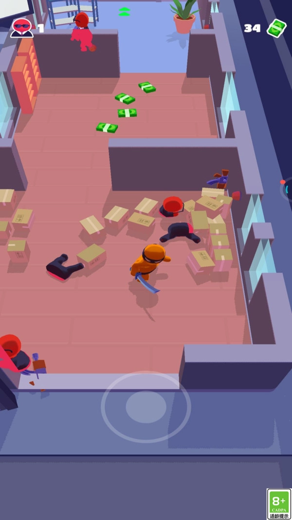 2、玩家借助屏幕上的虚拟摇杆操控忍者移动,搭配不同的按键组合,还能施展出华丽的连招,对敌人展开连续攻击。