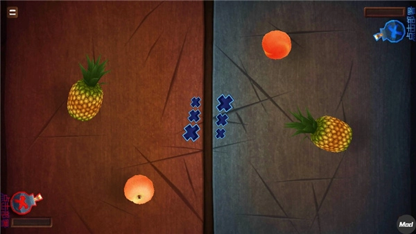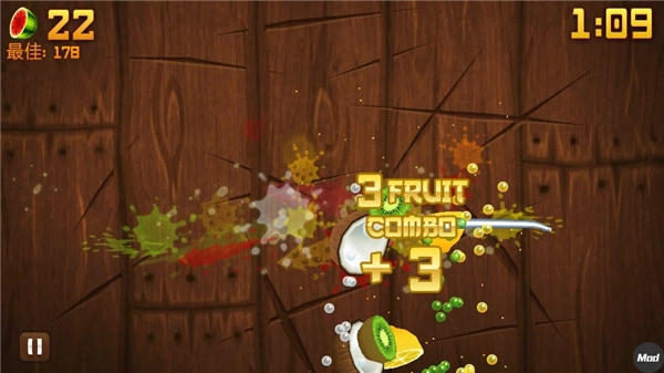 Zen:在图标是苹果的Zen模式里,没有炸弹,只有水果会持续出现,时长为一分半。这一分半内,谁通过连击切水果得到的分数越高,谁就是赢家。不会因为水果掉落而失败。