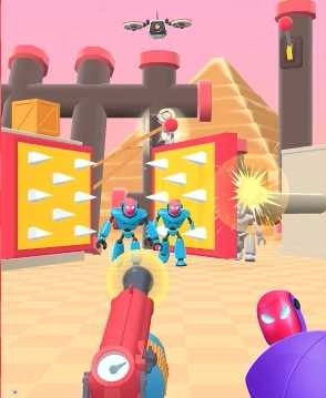 只要能避免被黄色机器人攻击,就算挑战成功啦!而且还能给自家的重力枪升级改装,玩起来特别有意思!