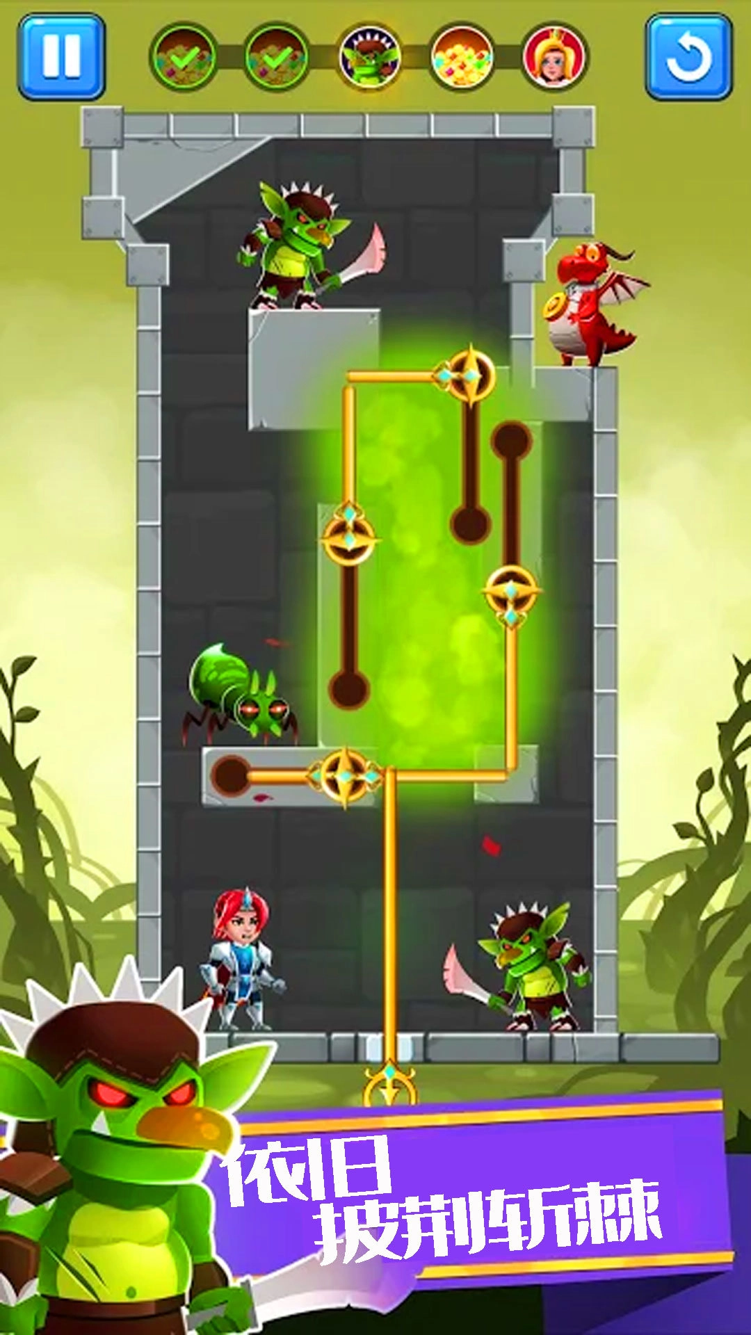 《欢乐英雄大作战》是一款以拉针解谜和拯救公主为核心玩法的游戏。在这个游戏里,玩家将化身勇敢的英雄,开启拯救公主的冒险征程。通过展现自身的智慧与勇气,解救被困的公主,从而成为真正的英雄!