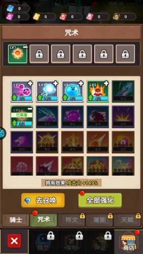 8、装备咒术可以让自己的攻击更加强大,咒术同样也需要消耗钻石获得。