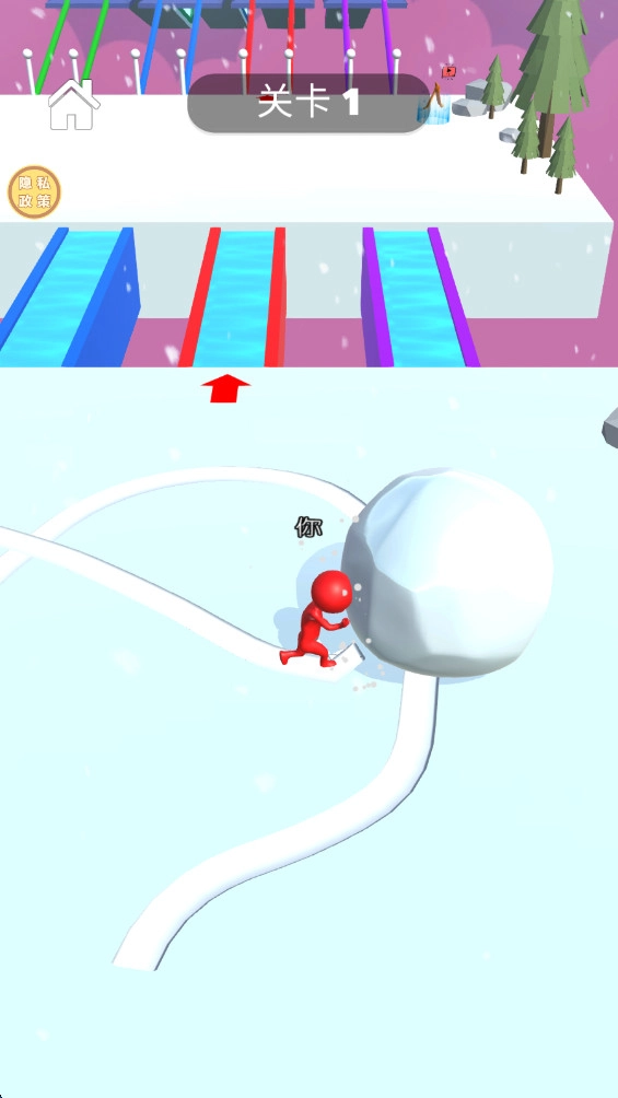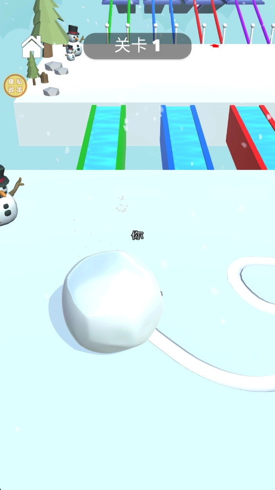 《快快向前闯》以雪球竞速为核心玩法,玩家将操控萌趣角色推动雪球在缤纷赛道上持续前行。游戏采用多赛道并行的设计机制,每条赛道都有专属的色彩标识,玩家需依据自身角色的颜色匹配对应的赛道路径。随着雪球滚动过程中不断增大,玩家能够借助雪球的体积优势碾压其他对手来获取领先地位,不过在此过程中也要留意规避各类障碍,防止雪球因碰撞而缩小。