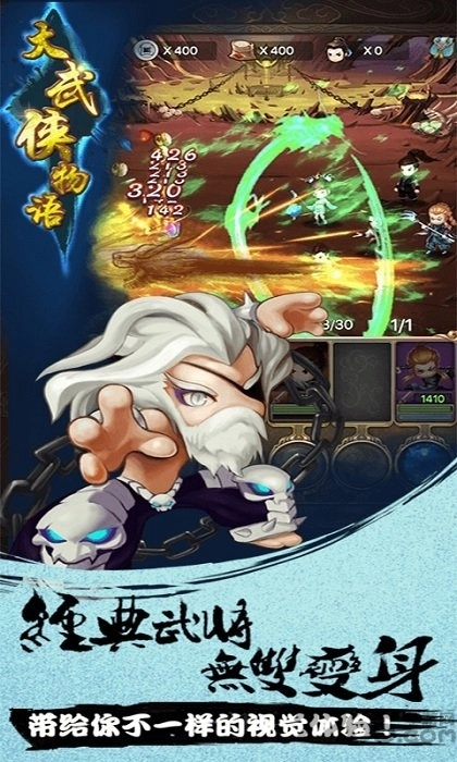 集万千期待于一身的RPG神作《大武侠物语》震撼登场,武侠爱好者们还在犹豫什么?宅男女神原味献声,陪你闯荡江湖;即时战斗一划释放,超爽对决尽在掌握;Q萌角色开启武侠大战,开年巨献卡牌佳作;百位武侠英雄倾情演绎,共赴华山之巅;华丽技能搭配炫丽特效,战斗体验身临其境;神器附灵自带专属光效,惊艳全场羡煞旁人。