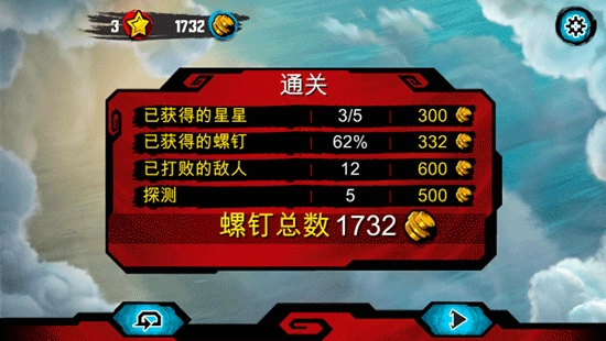 玩家在闯关时要尽量收集螺钉,另外如果条件允许,多消灭一些敌人也能在通关结算时获得更多螺钉奖励;至于探测奖励,则是以玩家探索的区域范围作为依据来计算的。