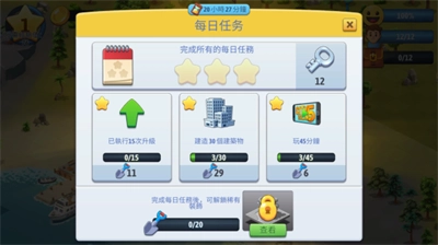 3、任务系统十分丰富,并且会依据玩家的岛屿发展进度来发布不同的任务。