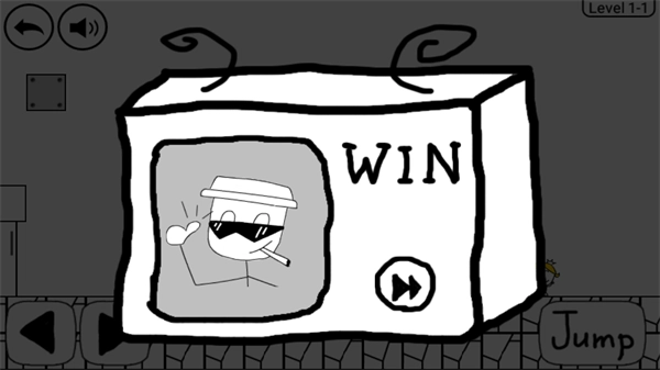 游戏采用虚拟按键操作,点击屏幕左侧能控制小人左右移动,右侧则负责跳跃功能。玩家的目标是穿越层层障碍,最终抵达公主所在之处。途中会遇到红色的“SAVE”图案,一旦触碰就能保存当前的游戏进度,即便后续失败死亡,也可以从这个保存点重新开始挑战。整个游戏包含6个大关卡,每个大关卡下又细分为6个小关卡,总计36个小关卡。每一关都布满了各种陷阱,玩家需要打破常规的思维模式,用一种无厘头的方式来完成关卡挑战。