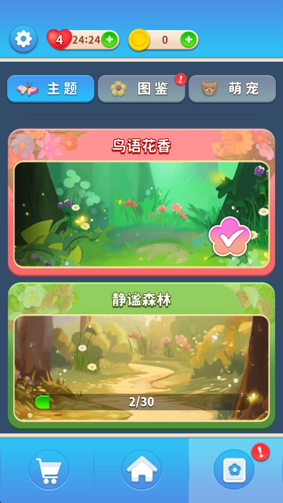 1.画面清新明快,花朵与蝴蝶的设计精巧细腻,营造出轻松惬意的氛围,使玩家在视觉层面获得充分的舒缓。