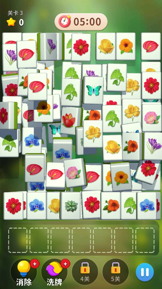 这是一款以花卉为主题的益智消除游戏,核心玩法聚焦于连接消除。在色彩绚丽的牌面上,玩家需要快速找到并连接三个相同图案的牌,完成消除目标,体验指尖操作的乐趣。