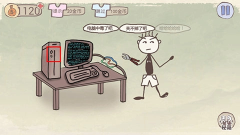 在这一关里,关闭电脑最直接的方式可不是傻乎乎地去剪断电源,不然史小坑会被电到,我们得直接点击电源按钮来关机,这样就能顺利过关啦。