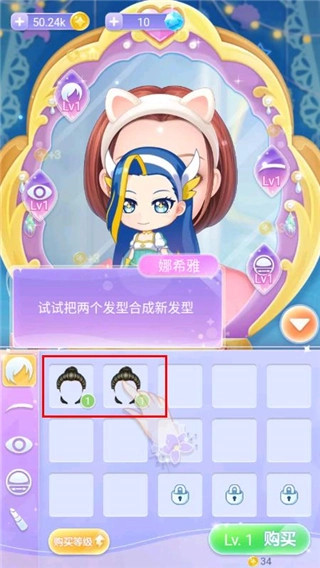 通过合成功能,把两个相同的妆容部件合成为全新款式,以此解锁更多造型,同时利用智能搭配系统来搭配服装。