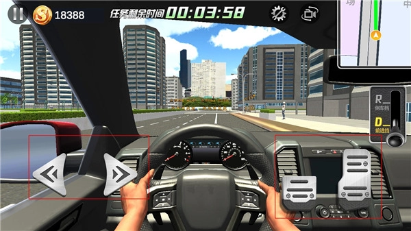 1、打开后,能看到里面的车辆连油门和刹车都是真实还原的,档位也参照了自动挡车型的设计,只有前进档和倒车档;若要倒车,需先挂入倒车档,再踩下最右边的油门来完成操作。