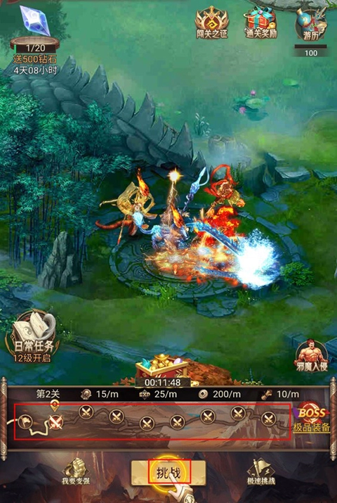2、玩家通关达到一定数量的关卡后,还能领取目标奖励,其中包含山海异兽、装备等物品。