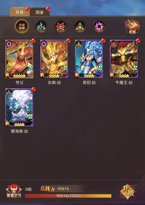 4、解锁异兽后,玩家可借助穿戴装备、升级、升星等方式提升异兽战力,从而更轻松地战胜敌人。
