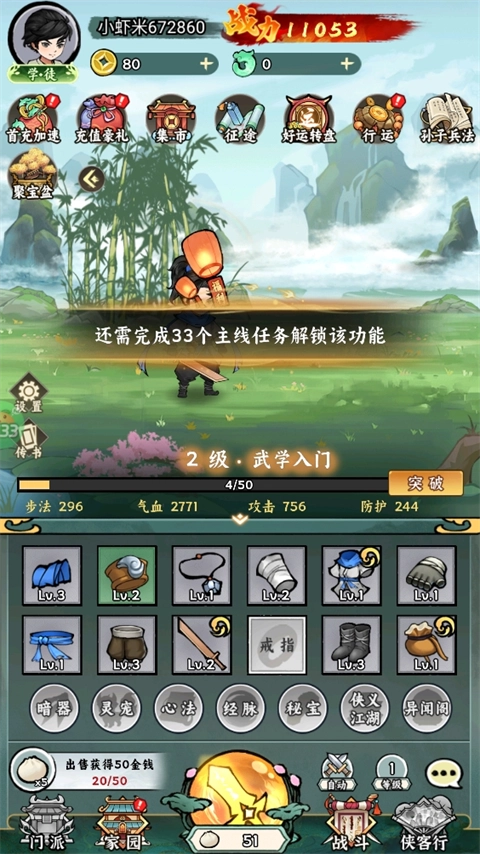 侠客行挑战攻略:前期一定要优先刷“侠客行”关卡,通关不仅能拿到丰厚奖励,还能解锁新功能,而且每通过一关都能提升角色的战斗力。