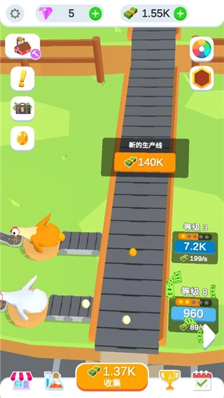 游戏初期需要手动解锁基础生产线来获得第一只母鸡,之后可以用获得的收益把基础草窝慢慢升级成木箱、顶级绒屋等不同等级的鸡窝。