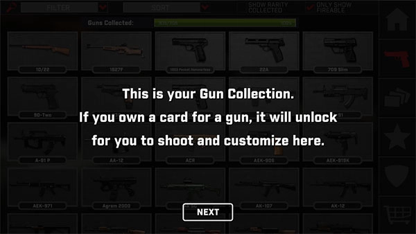 1、从本站的真实枪械板块进入后,会有新手教程引导,通过使用卡片就能解锁目标枪支。