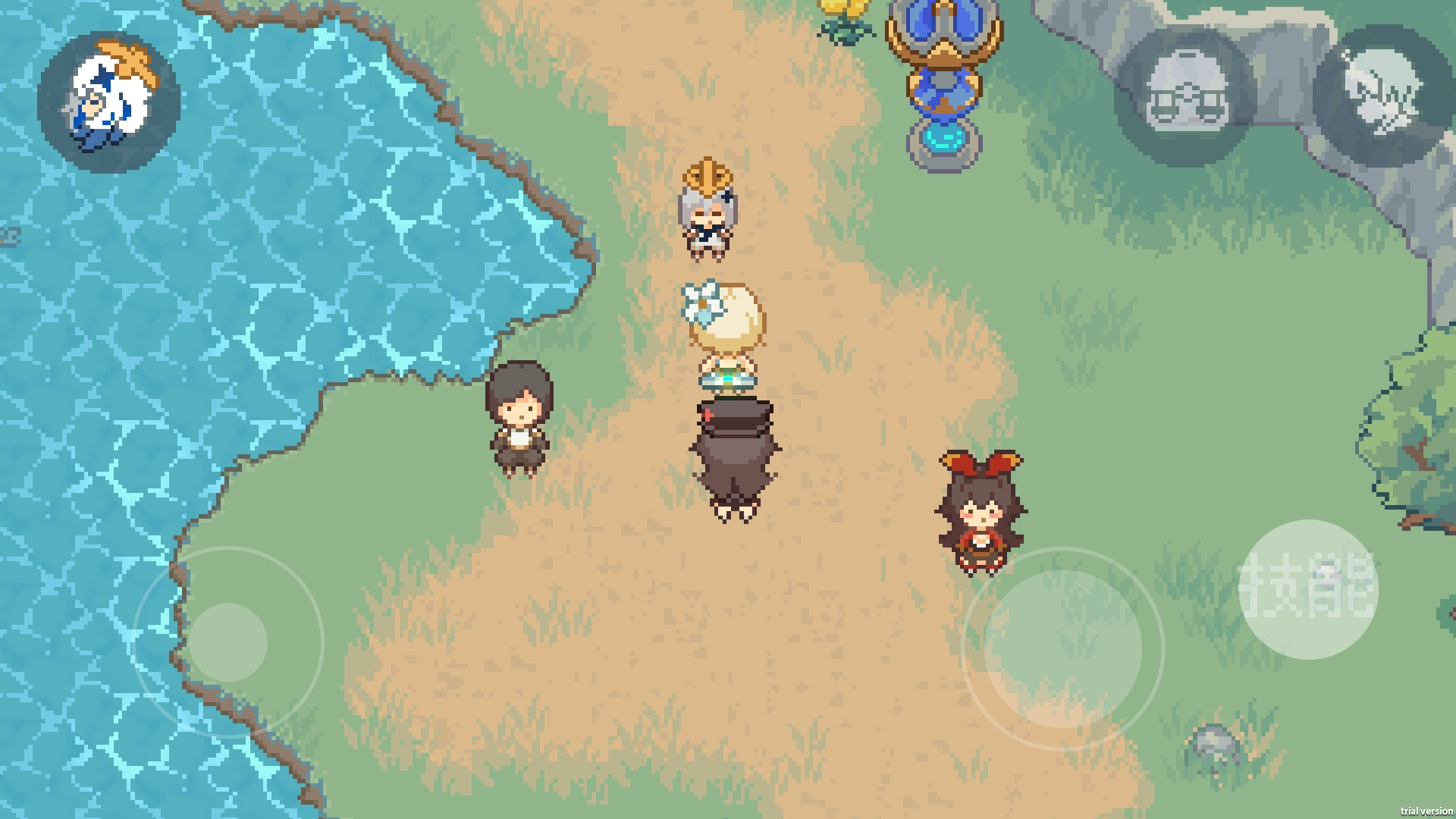 地图的整体结构与原作保持高度一致,玩家能够操控角色在充满像素风格的提瓦特大陆上自由探索与移动。