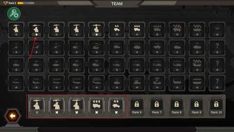 3、进入阵容配置界面后,可把已解锁的兵种及军事单位部署到下方的阵容栏中,以便在对战时进行调配。