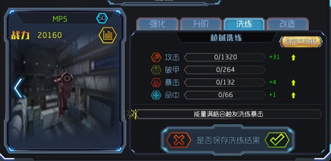 4、洗练:玩家可消耗金币和钻石对枪械进行洗练操作,以此提升武器的攻击、命中、暴击等各项属性。