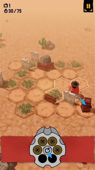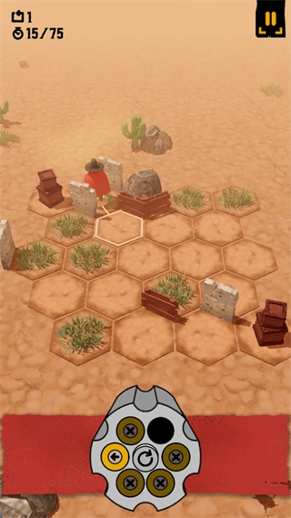 GUNCHO是一款以西部荒野为舞台的策略回合制游戏,玩家将化身牛仔,在辽阔的沙漠里与土匪展开智谋较量。它别出心裁地把左轮手枪的弹仓机制融入战斗系统,六发子弹的装填位置对应着不同的攻击方向,玩家得通过旋转弹仓、退弹重组等操作来规划射击路径。随着关卡的推进,还会解锁双枪械配置、特殊弹药等多样内容,让战斗策略的深度逐步提升。