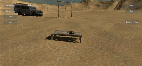 2、进入后,左侧依次为自调平开启、高帧率开启、第三人称视角以及最后的重置选项;右侧则设有退出按钮与暂停按钮。