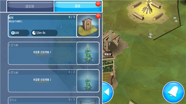 1、主要围绕建筑与采集展开,建筑物划分为装饰性和实用性两类,其中装饰性建筑支持出售。