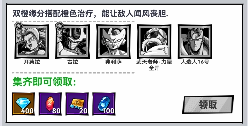 游戏内设有力、速、肉、气四大阵营,玩家能够自由搭配出超级赛亚人战队、宇宙帝王团这类经典组合。