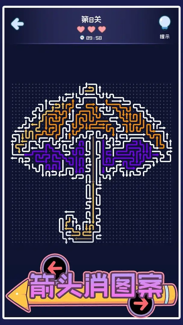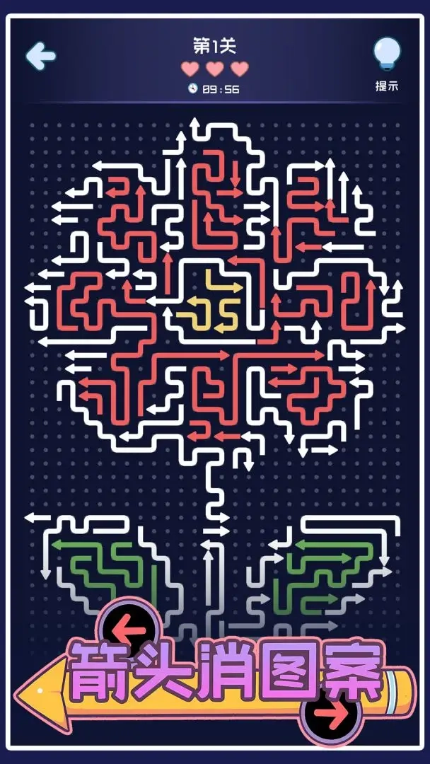 箭头消图案是一款轻松有趣的休闲游戏,点击屏幕上的箭头,它就会顺着指示方向滑出画面。每个关卡都设计了独特的图形谜题,需要你仔细观察箭头的排列与指向,规划好点击顺序才能顺利解开。随着关卡的推进,图案会变得更加精巧复杂,带来层层递进的解谜乐趣,很适合在碎片时间里放松心情、活跃思维。