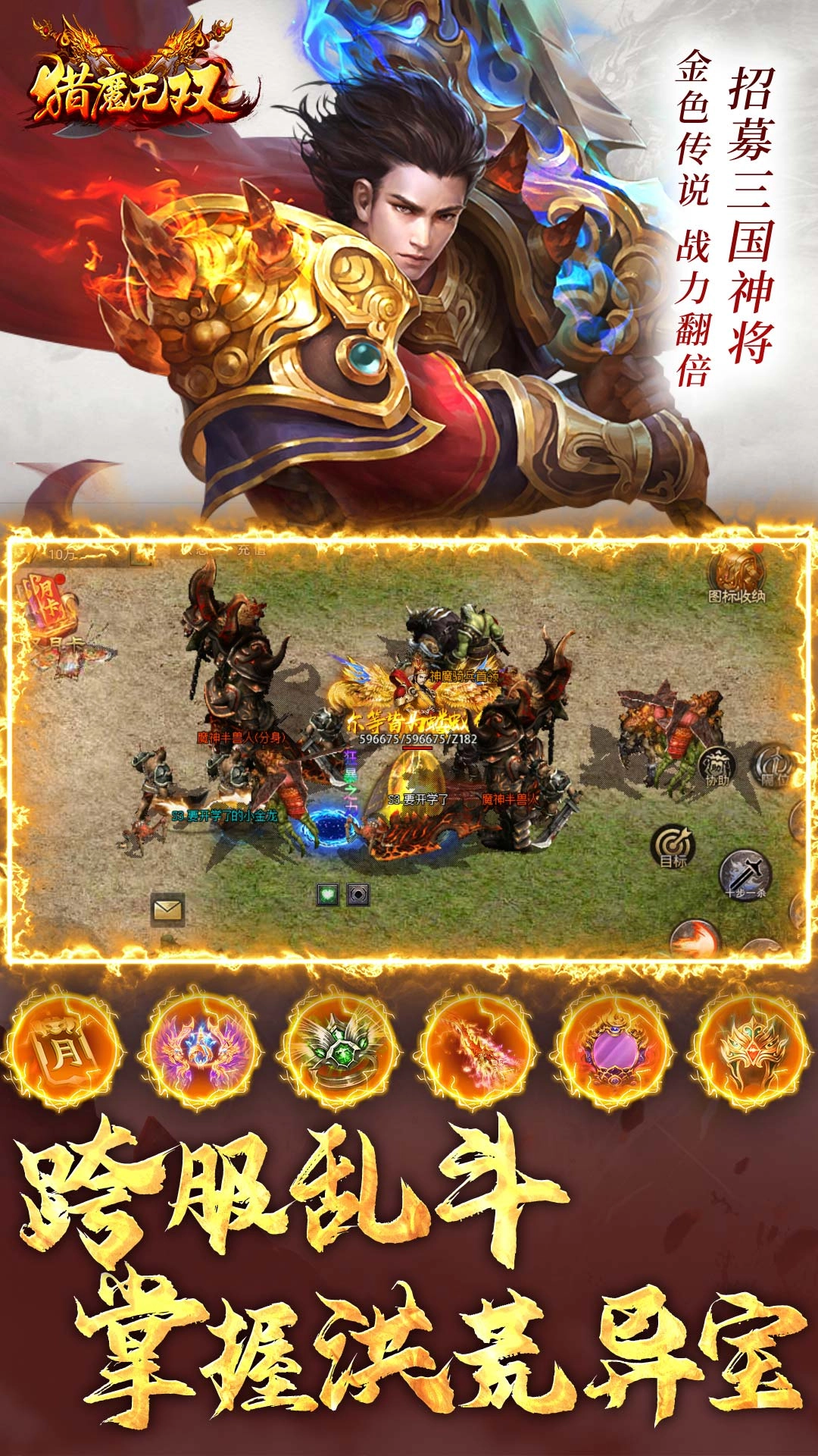 《猎魔无双》是一款以魔幻战斗为核心的角色扮演游戏,它将玩家带入一个战火纷飞、永无宁日的战场。在这里,玩家将与兄弟们并肩作战,一同勇闯危机四伏的无尽魔域。游戏采用先进的3D物理引擎,为玩家带来沉浸式的真实体验。其独特的单职业玩法延续了传奇1.85版本的经典风格,同时新增了三国名将系统,让玩家能够体验招募武将、培养英雄、打造个性化天赋流派的乐趣。无论是战斗带来的刺激感,还是策略层面的深度,都充分展现了这款游戏的独特魅力。