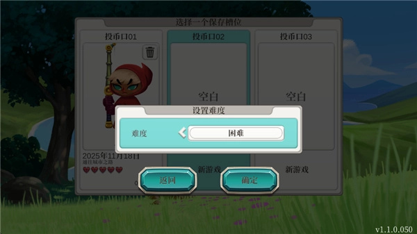 2、选择一个存档位置,并选择难度;