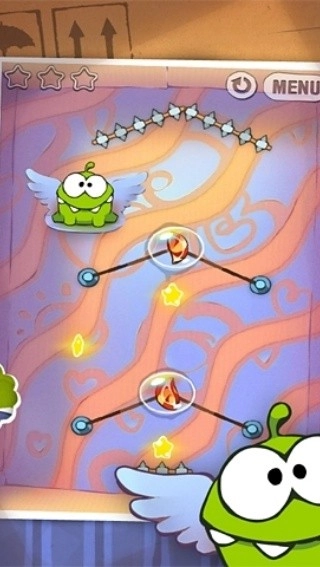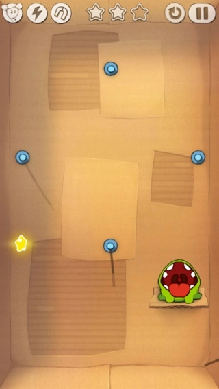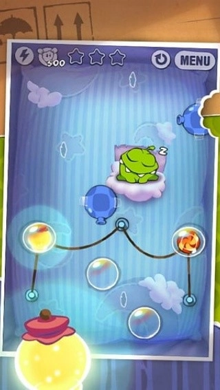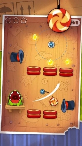2、进入关卡通过切割绳子,获得全部的星星。