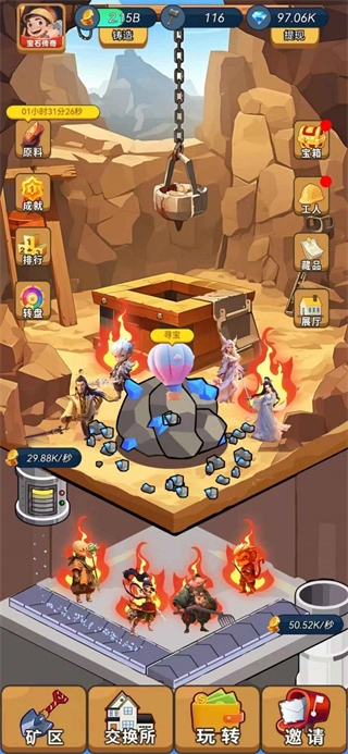 3、角色越稀有,产出就越丰厚,多条线路可供自由选择,每条线路都能进行指派;玩家还能通过开启宝箱获取大量奖励,此外还有众多全新矿区等待探索,不同矿区产出的矿物也各不相同。