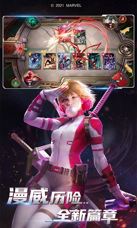 漫威对决是一款经漫威授权的卡牌竞技游戏,它融合了漫威宇宙中丰富的角色设定与富有深度的策略玩法。玩家能够收集并组合来自漫威宇宙的数百位超级英雄与反派角色,每个角色都具备独特的技能和属性。玩家需要通过巧妙的卡组搭配与战术运用,在实时对战中战胜对手。游戏采用先进的3D引擎,打造出极致的视觉效果和流畅的操作体验,让玩家仿佛置身于漫威电影世界,尽享身临其境的战斗快感。