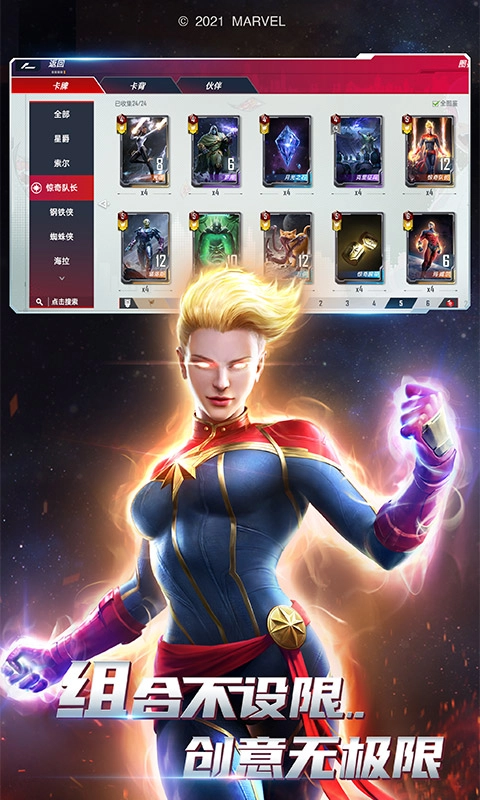 这款游戏的核心特色在于其自由度极高的卡组构建系统,玩家能够依据自身的喜好和战术需求,自由搭配角色与技能,打造出独一无二的战斗风格。游戏里的每个角色不仅在外观上还原了漫威电影中的形象,更在技能设计上凸显了其个性与背景故事,提升了游戏的代入感。随着游戏的推进,玩家会遭遇各种各样的敌人和挑战,这考验着他们的战略思维与反应能力,保证每一场战斗都充满新鲜感与挑战性。