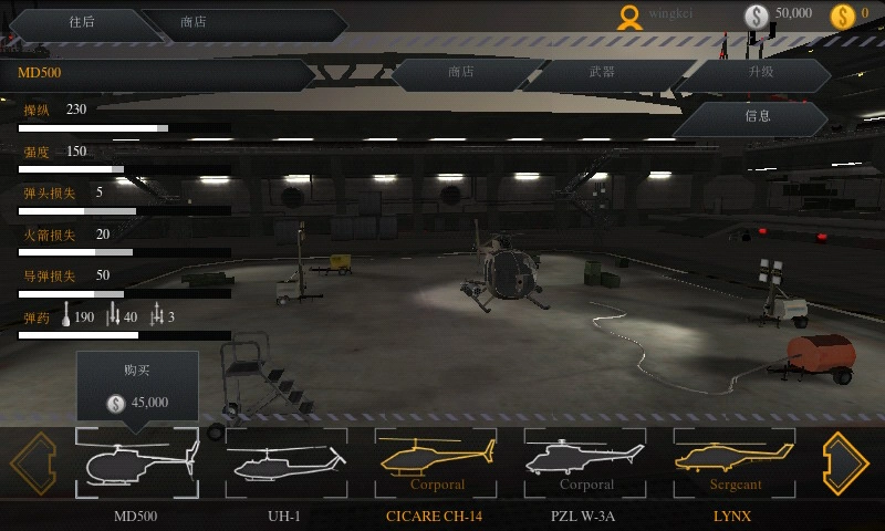 内设有多种直升机,每种直升机都拥有独特的技能和战斗能力,玩家可以根据自己的喜好和战斗需求进行搭配。