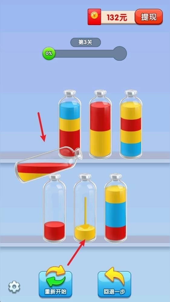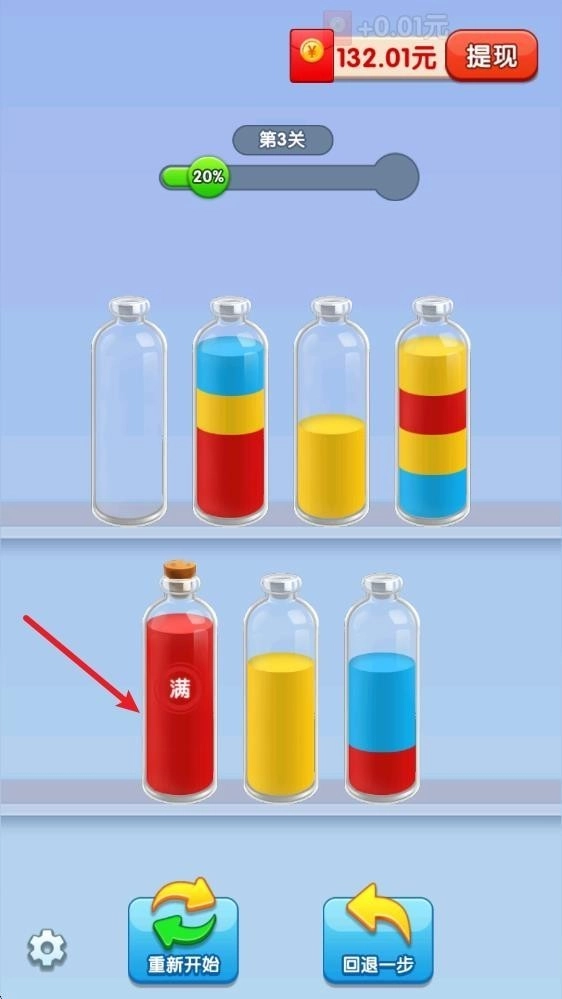 4、只要把所有颜色的液体都成功灌满瓶子,就能顺利通关并获得相应奖励。