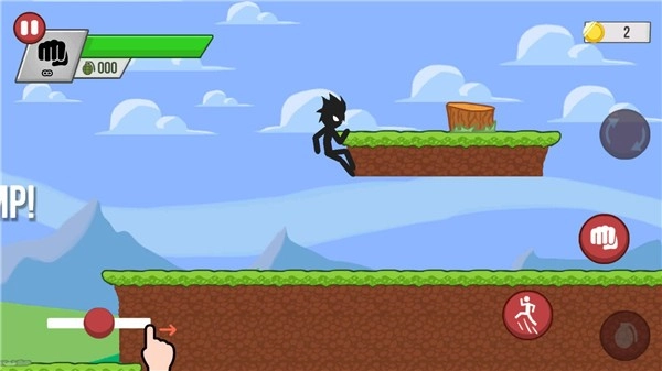 2、我们能够通过左右移动手指的位置来操作,右侧的按钮可以用来执行攻击和跳跃动作。