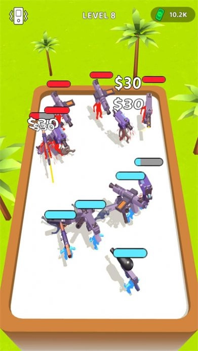 1、玩家在操控枪头男击败反派的过程中,能体验到前所未有的乐趣,其玩法独树一帜,十分新颖。 2、难度会呈现阶段性提升,让玩家在感受到游戏易上手的同时,也能体会到大BOSS带来的压迫感。
