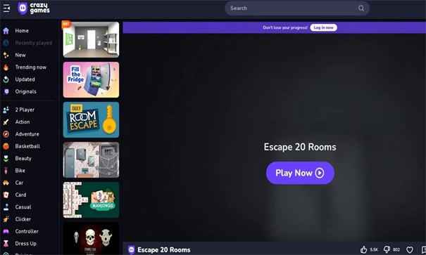 crazygames拥有丰富的资源,不管是大型3D游戏还是轻松休闲的小游戏,都可以在这里找到。