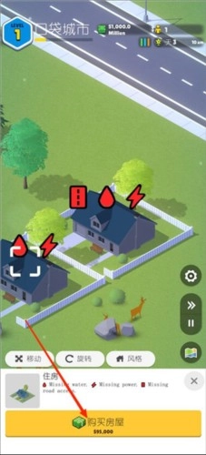 5、房屋建造需要一定时间,建成后无法立刻入住,需点击进行房屋购买操作。