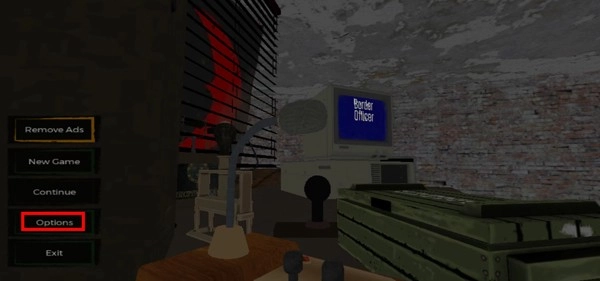 1、首先打开边境检察官,进入主页面后,点击倒数第二行的设置选项即可,该选项对应的英文是“options”。