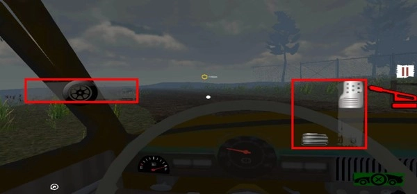 4、最后滑动左侧的轮胎图标按钮,同时配合右侧的刹车和加速两个踏板进行驾驶操作,这样就能驶向你想要到达的位置了。