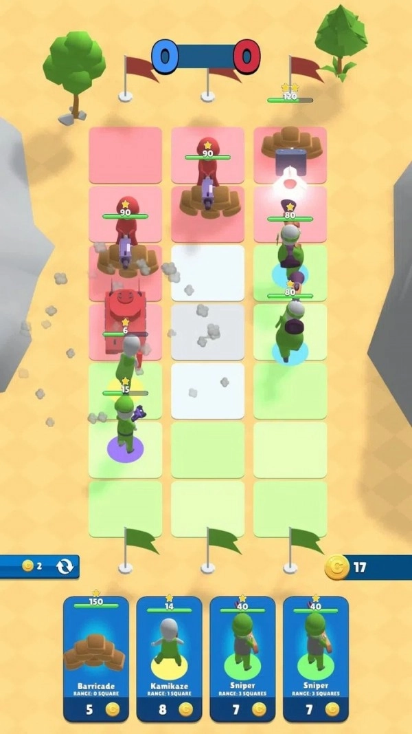 1、在该策略玩法里开展1对1对战,通过部署各类部队来夺取旗帜;