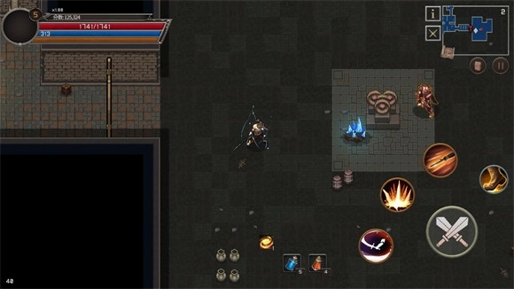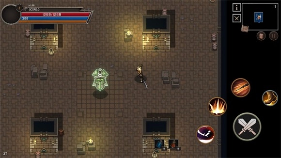 4、进入幻影塔后,右侧会新增普攻、技能与翻滚按钮,屏幕右上角则是地图。