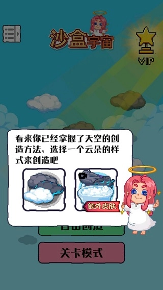 当关卡挑战成功后,你还会获得一份额外奖励。以刚才提到的第一关为例,在学会天空的创造方法后,就挑选一种云朵样式来进行创造吧!