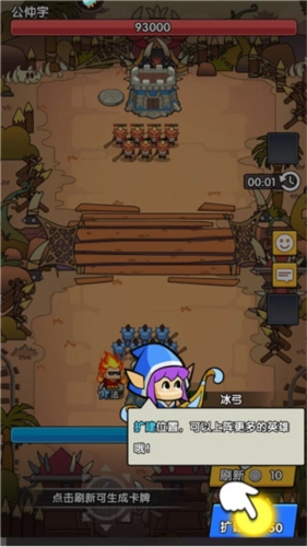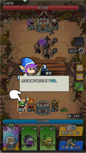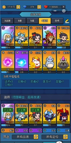 1、在游戏中,点击下方的角色就能让其上阵,选定一个角色后,另外两个角色会自动消失。每个职业里都有能力各异的英雄,官方用金色、紫色、蓝色、绿色这些不同的颜色来区分不同英雄的强度等级。