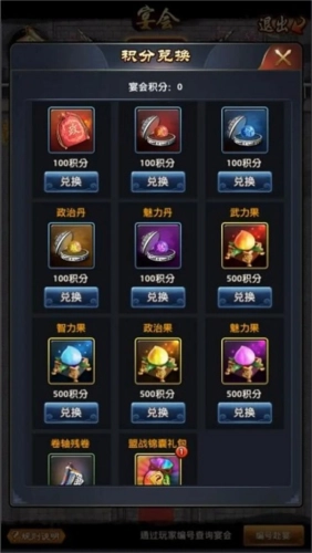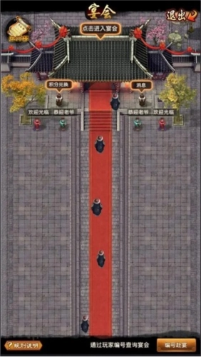 举办宴会宴请宾客,席间气氛热烈畅快。开启宴会并邀请伙伴参与,双方都能获得积分。这些积分可用于兑换政绩礼包、随机盟战锦囊等各类道具。